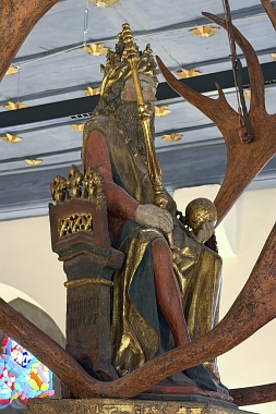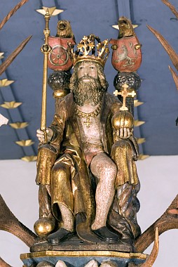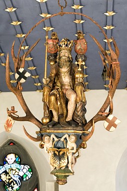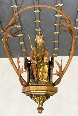 Lustre impérial avec bois de renne (vers 1480-1490)) Kaiserleuchter mit Rentiergeweih (um 1480-1490) Imperial chandelier with reindeer antlers (around 1480-1490) |