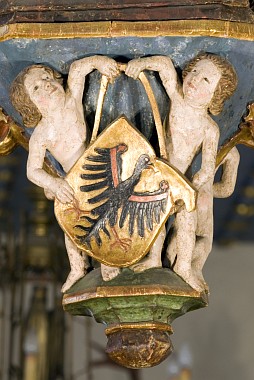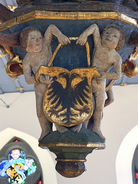 Deux angelots tiennent l'aigle bicéphal des Habsburg Zwei Putten halten den Doppelkopfadler der Habsburger Two cherubs hold the double-headed eagle of the Habsburgs