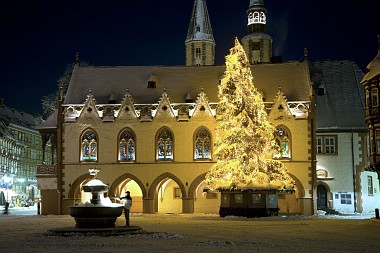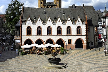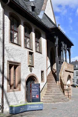 L'hôtel de ville construit entre 1295 et 1326 est considéré comme l'un des hôtels de ville les plus anciens des pays germanophones Das Rathaus wurde zwischen 1295 und 1326 errichtet und gilt als eines der ältesten, noch erhaltenen Rathäuser im deutschsprachigen Raum The town hall was built between 1295 and 1326 and is considered one of the oldest surviving town halls in the German-speaking world |