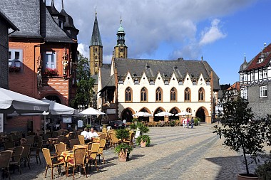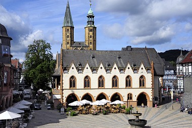 Les deux tours de l'église du Marché en arrière-plan Im Hintergrund, die beiden Türme der Marktkirche The two towers of the Market Church in the background |