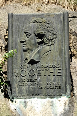 Pierre de Goethe - Dalle de granit - Goethe et Fritz von Stein auraient fait une pause déjeuner sur cette dalle de granit en septembre 1783 Goethestein - Granitplatte - Auf der Granitplatte sollen im September 1783 Johann Wolfgang von Goethe und Fritz von Stein eine Mittagsrast eingelegt haben Goethe Stone - Granite slab - Goethe and Fritz von Stein are said to have taken a lunch break on the granite slab in September 1783