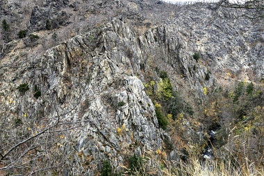 Une curiosité de la vallée - Les parois rocheuses présentent d'impressionnants affouillements Eine tolle Sehenswürdigkeit - Die Felswände weisen imposante Auskolkungen auf A magnificent place of interest - The rock faces show impressive scouring