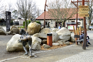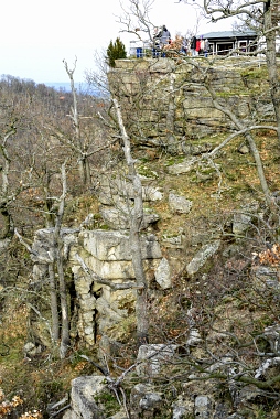 Sur le plateau de l'Aire de Danse des Sorcières (Hexentanzplatz) altitude 454 m Auf dem Hexentanzplatz (454 m ü.NN) On the Witches' Dance Square (Hexentantzplatz) altitude 454 m)