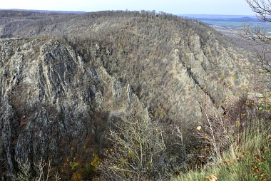 Il descend abruptement de la Vierhöhe (altitude 478 m) jusqu'au fond de la vallée de la Bode (altitude 200m) Er fällt von der La Viershöhe (478 m ü.NN) steil bis zum Grund des Bodetals bei Königsruhe (200 m) It drops steeply from the La Viershöhe (altitude 478 m) to the bottom of the Bode valley near Königsruhe (altitude 200 m)