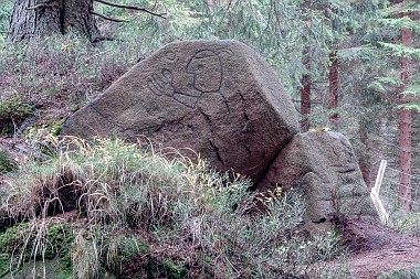 Appellée aussi Pierre des Moines - Pierre gravée Auch Mönchsstein genannt - Eingeritzter Brocken Als called Monk's Stone - Carved stone