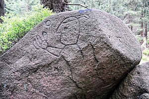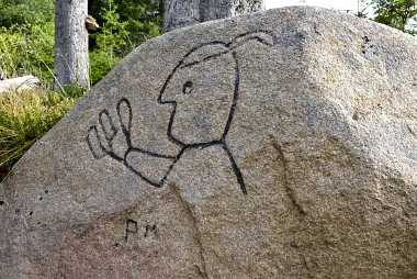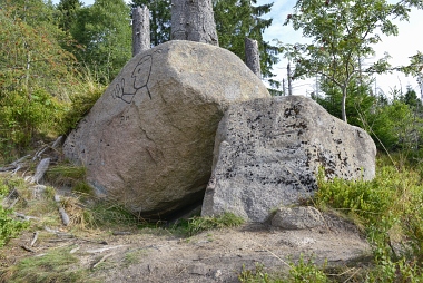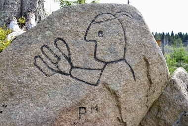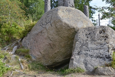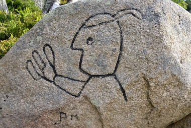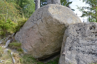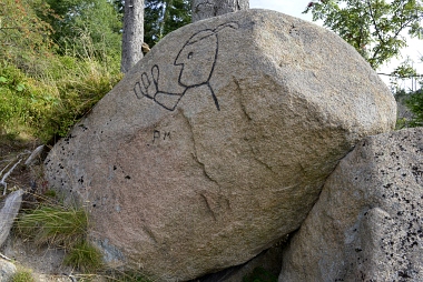Rocher en granite gravé Eingeritzter Granitbrocken Carved garnite rock
