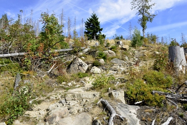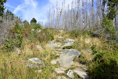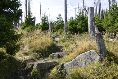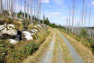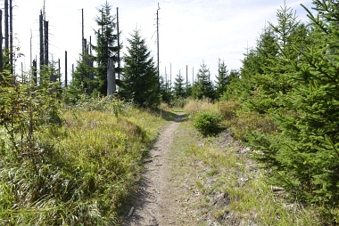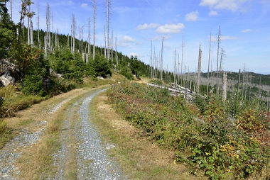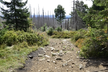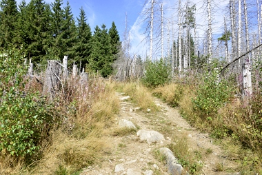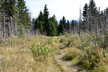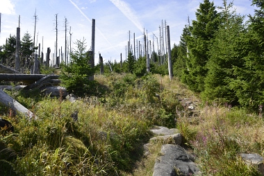 Entre les épicéas morts Durch die abgestorbenen Fichten Through the dead spruce trees