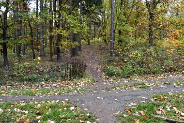 Nous traversons le chemin forestier Wir gehen geradeaus Crossing over to the forest way
