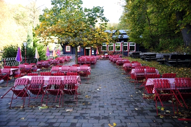 La terrasse est déserte Der Biergarten ist leer The beer garden is empty