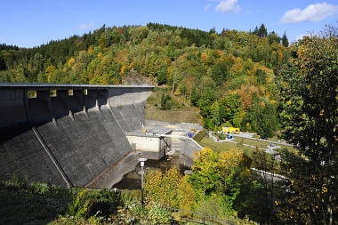 Le barrage sert à la protection contre les crues, à l'élévation du niveau des basses eaux, à la production d'électricité et de réservoir inférieur à la centrale de pompage Die Talsperre dient dem Hochwasserschutz, der Niedrigwasseraufhöhung, der Stromerzeugung und gleichzeitig das Unterbecken für das Pumpspeicherwerk The dam serves for flood protection, low water level increase, power generation and at the same time the lower reservoir for the pumped storage power plant