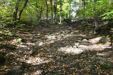 Assez raide et caillouteuse sur 350 mètres Ziemlich steil und steinig (350 Meter lang) Quite steep and stony