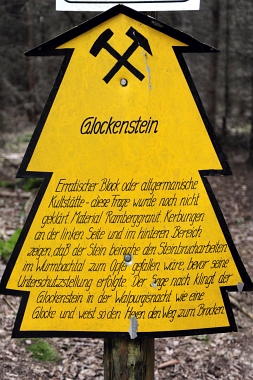 La légende nous dit que la cloche retentit dans la nuit de la Walpurgis pour indiquer aux sorcières le chemin du Brocken Der Sage nach klingt der Glockenstein in der Walpurgisnacht wie eine Glocke und weist den Hexen den Weg zum Brocken According to legend, the stone rings in the Walpurgis Night and points for the witches the way to the Brocken