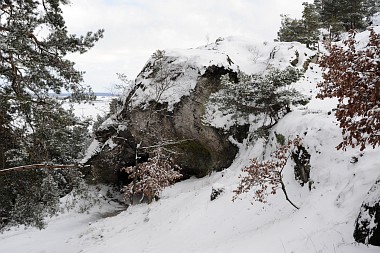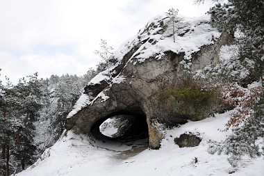 Cette caverne s'appelle aussi Caverne du Tonnerre Diese Felshöhle heißt auch Donnerhöhle This stone cave is called also Thunder's Cave