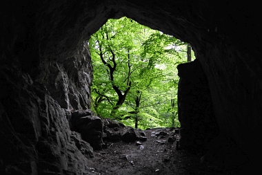 On suppose que la grotte fut habitée par un ermite nommé Volkmar en l'an 950 Es wird eine Besiedlung der Höhle durch einen Einsiedler namens Volkmar im Jahre 950 vermutet It is assumed that the cave was inhabited by a hermit named Volkmar in the year 950