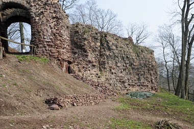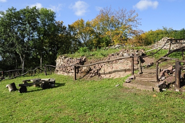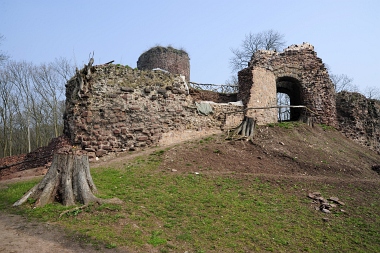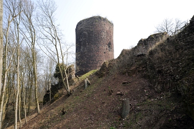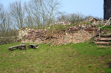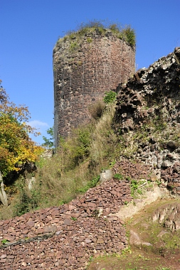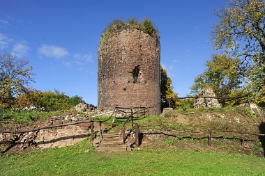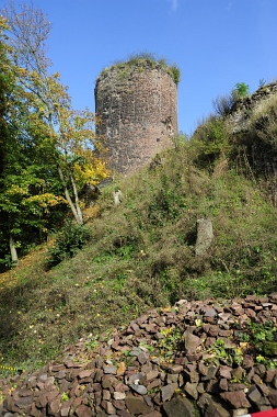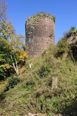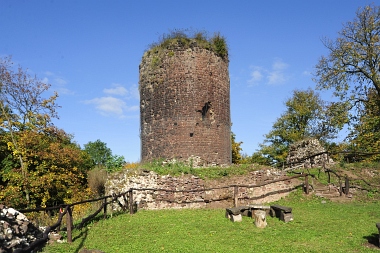 Donjon et murs du palais Bergfried und Mauerreste des Palas Keep and remains of the palace walls