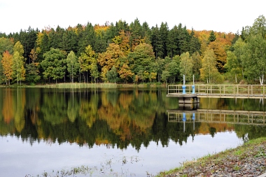Étang crée en 1934 pour l'alimentation en eau potable de la localité Stauteich erbaut 1934 für die Trinkwasserversorgung des Ortes A reservoir created in 1934 for the town's drinking water