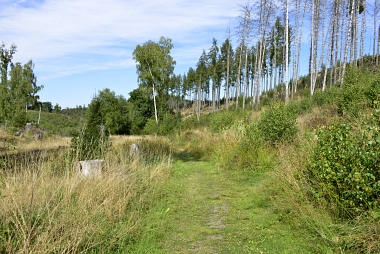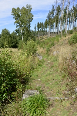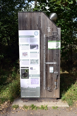 Le système hydraulique, situé autrefois à cet emplacement, comprenait trois pièces à roues, plusieurs fossés miniers et un petit étang An diesem Standort befand sich früher die Heller Wasserkunst, welche aus drei Radkammern, mehreren Kunstgräbern und einen kleinen Kunstteich bestand This location was formerly home to the Heller waterworks, which consisted of three wheel chambers, several artificial ditches, and a small artificial mining pond