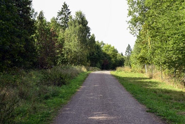 Sur un large chemin forestier Auf einem breiten Waldweg An a wide forest way