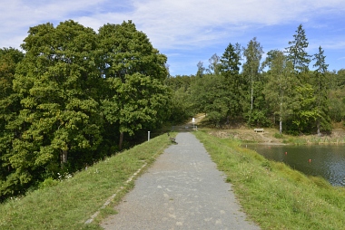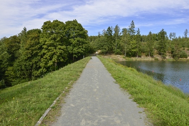 La digue de l'etang mesure 144 m de long Der Staudamm ist 144 m lang The pond dam is 144 m long