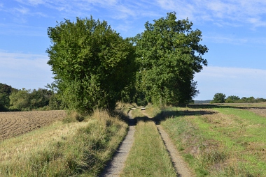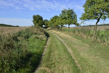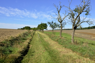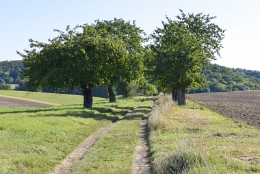 Chemin bordé d'arbres fruitiers Ein von Obstbäumen gesäumter Weg Way lined with fruit trees