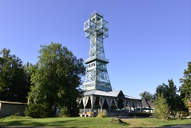 La tour en bois en forme de double croix a été inaugurée solennellement en 1834 et nommée d'après son donneur d'ordre, le comte Joseph de Stolberg-Stolberg Der damalige hölzerne Turm in Form eines Doppelkreuzes wurde 1834 feierlich eingeweiht und nach dem Auftraggeber Graf Joseph benannt The wooden tower in the shape of a double cross was ceremoniously inaugurated in 1834 and named after its commissioner, Count Joseph of Stolberg-Stolberg |