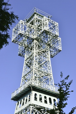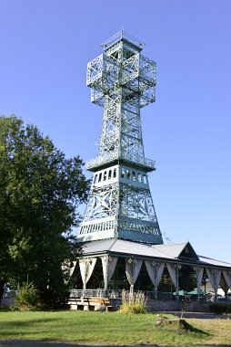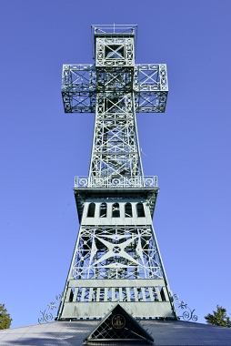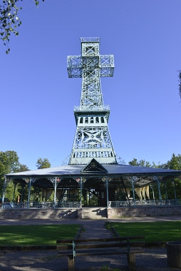 La construction de la nouvelle Croix Joseph a commencé en 1896 et fut conçue en structure métallique, calquée sur la Tour Eiffel à Paris In 1896 wurde mit dem Bau des neuen Josephskreuz begonnen. Der Turm jedoch wurde nach dem Vorbild des Pariser Eiffelturms als Stahlfachwerkkonstruktion ausgeführt Construction of the new Joseph's Cross began in 1896. The tower, however, was designed as a steel truss structure, modeled on the Eiffel Tower in Paris