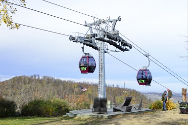 À l'arrivée des télécabines An der Seilbahnstation At the cable car station