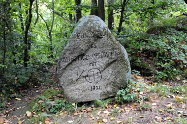 Lieu de découverte de la pierre sacrée à swastika en 1901 Fundstelle des Altheiligen Opfersteins (1901) mit Hakenkreuz Here was the old sacred stone with Swastika