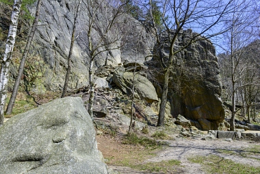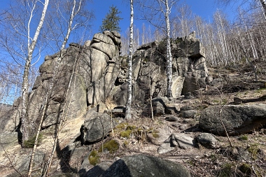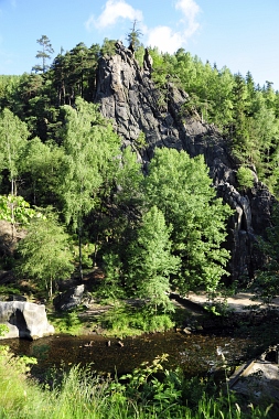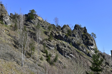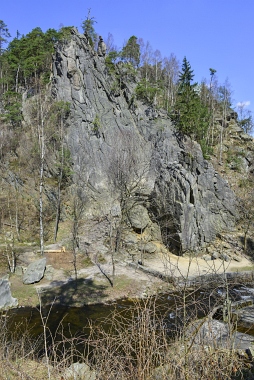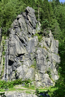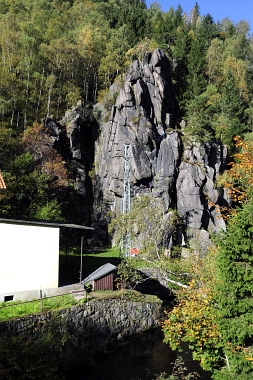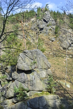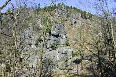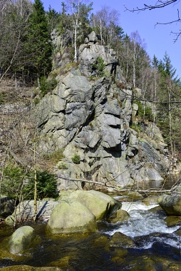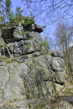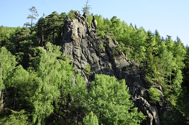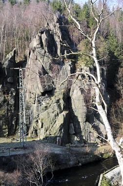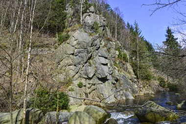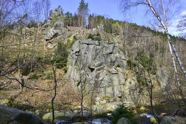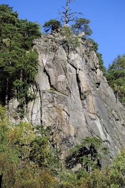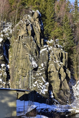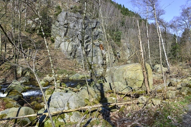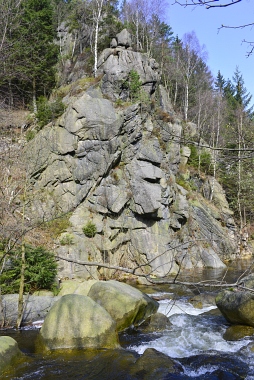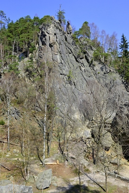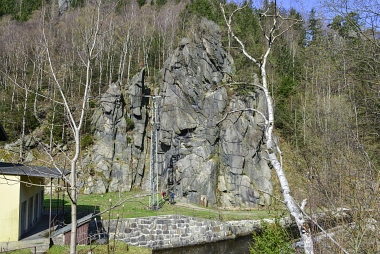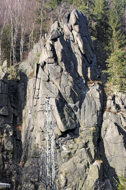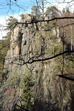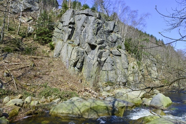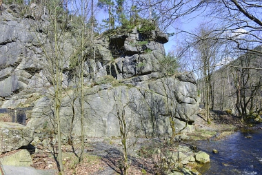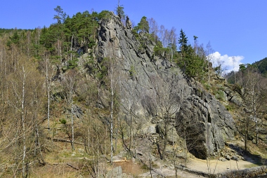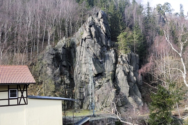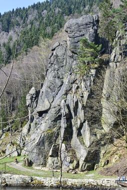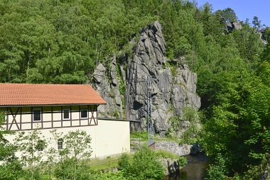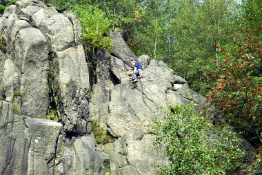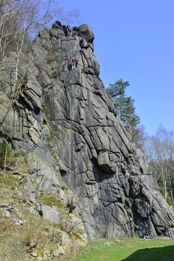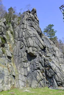 L'un des sites d'escalade les plus populaires de la vallée de l'Oker Einer der beliebtesten Kletterfelsen im Okertal One of the most populare climbing crags in the Oker Valley