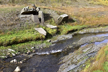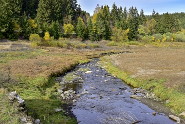 Dans la vallée de la Weißwasser en basses-eaux Im Weißwassertal bei Niedrigwasser In the Weißwasser Valley at low water