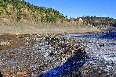 L'Oker dans le lac en basses-eaux Die Oker im Okerstausee bei niedrigem Wasserstand The Oker River in the reservoir at low water