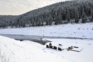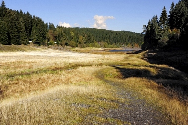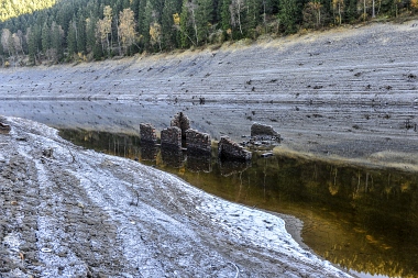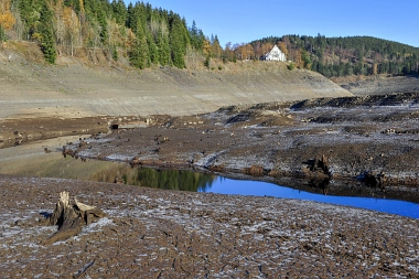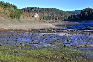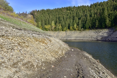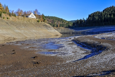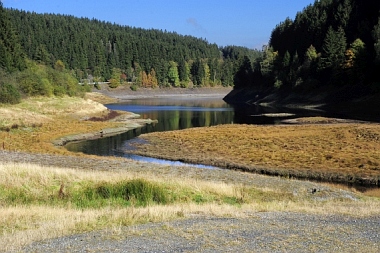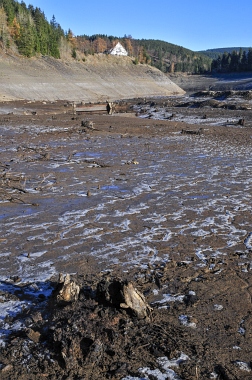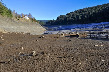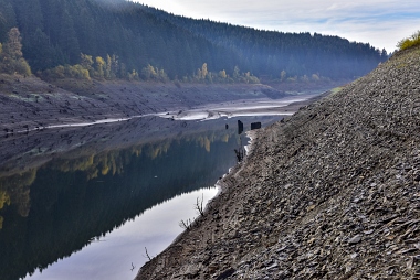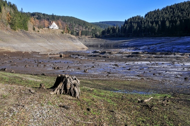 Le lac de barrage de l'Oker en basses-eaux Der Okerstausee bei niedrigem Wasserstand The Oker reservoir at low water