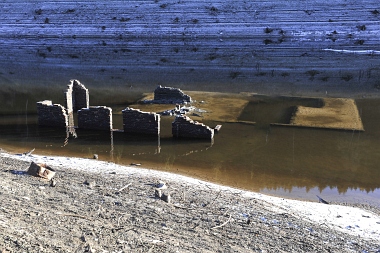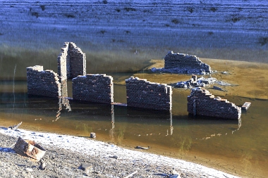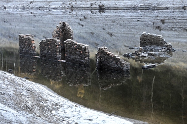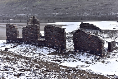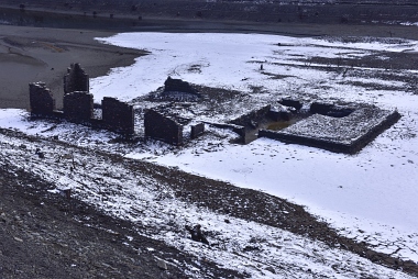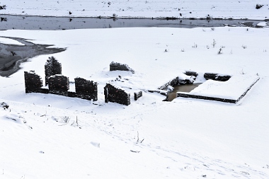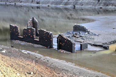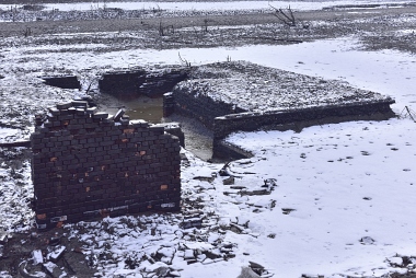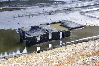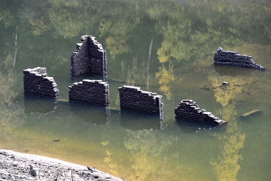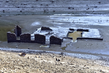 Les fondations des anciennes maisons réapparaissent Die Fundamente der alten Häuser tauchen wieder auf The foundations of the former houses reappear