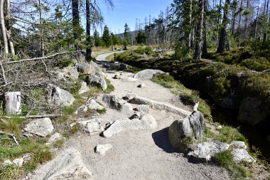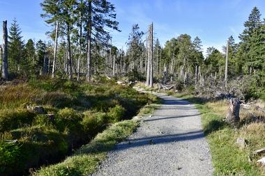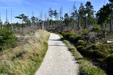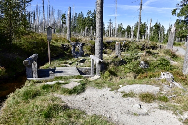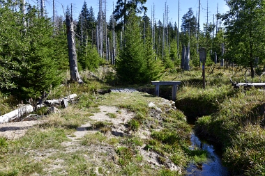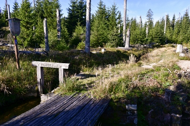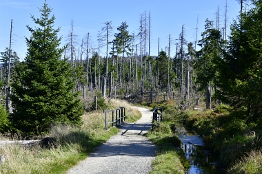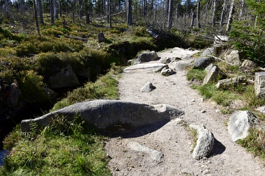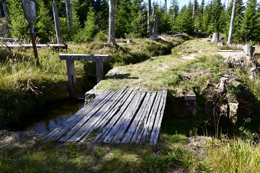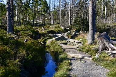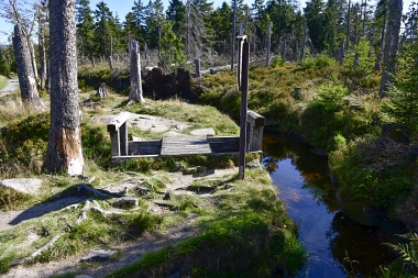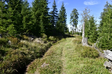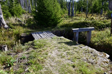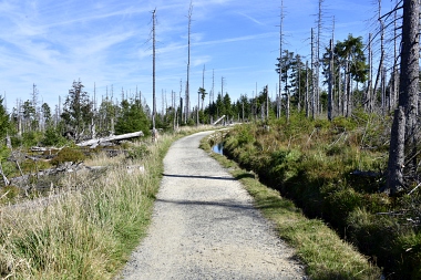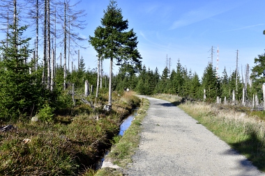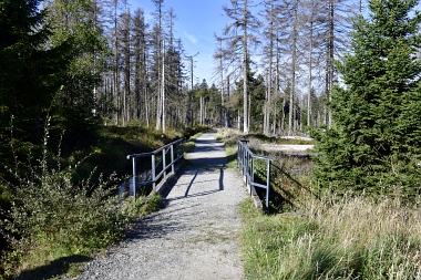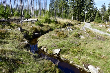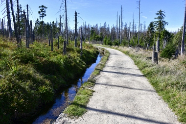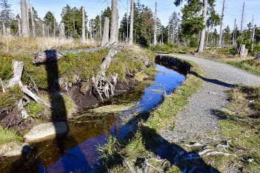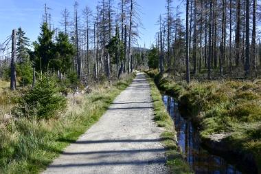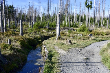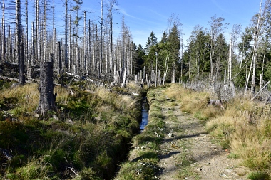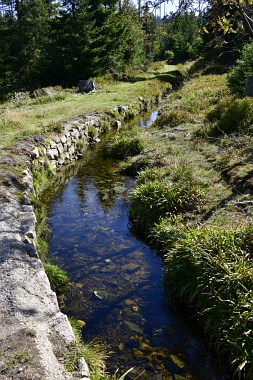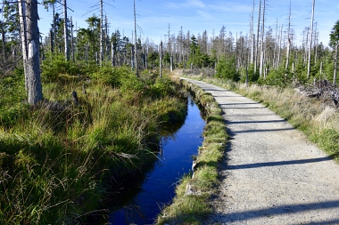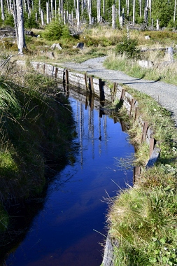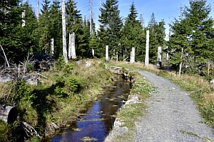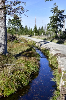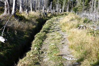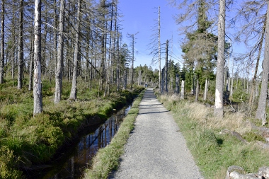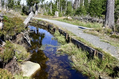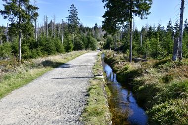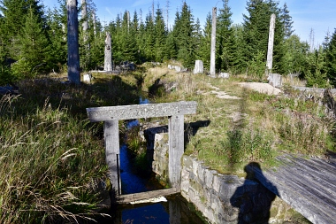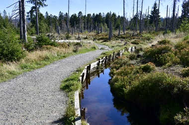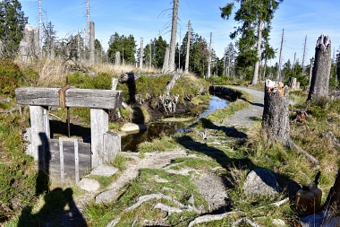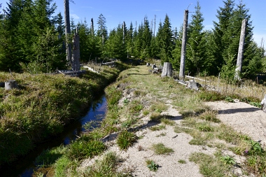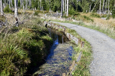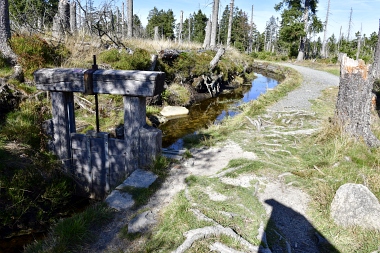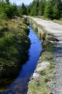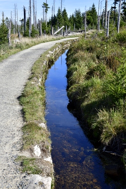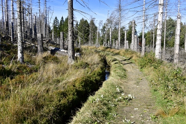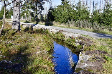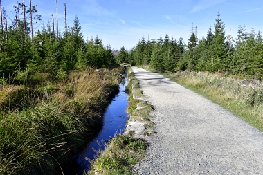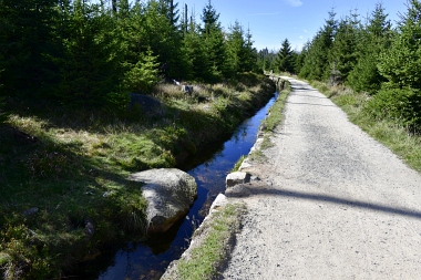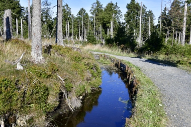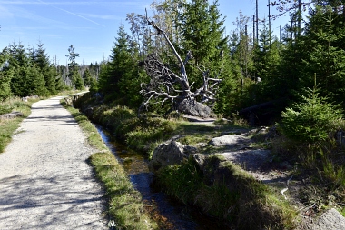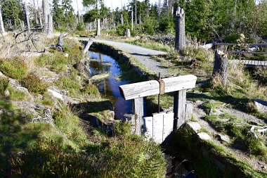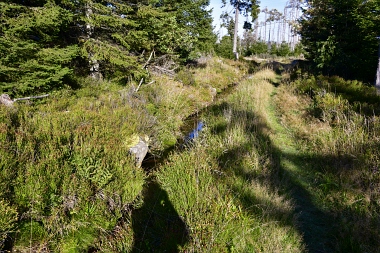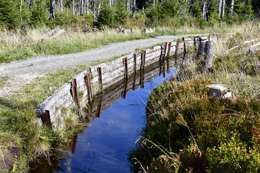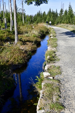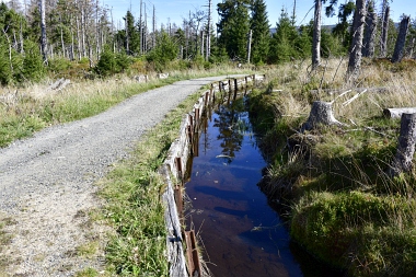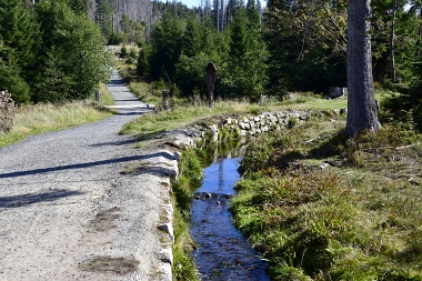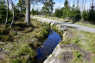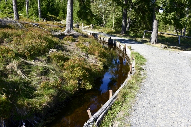 Nous suivons le fossé Abbe aménagé en 1827 pour amener l'eau de la région du Brocken vers le bassin minier de Clausthal (Burgstätter Zug) Wir folgen dem Abbegraben, der 1827 angelegt wurde, um zusätzliches Wasser über den Dammgraben zu dem Clausthaler Bergbaurevier zu leiten We follow the Abbe Ditch built 1827, it leads the water from the Brocken area over the Dam Ditch to the mining district of Clausthal