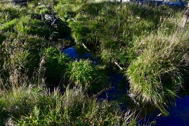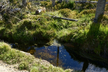 Ce fossé assèche deux hautes tourbières. L'acide humique de la tourbe donne à l'eau cette couleur. Der Abbegraben entwässert 2 Hochmoore. Die Huminsäure des Torfes färbt das Wasser The Abbe Ditch drain two moors. The humic acid colors the water
