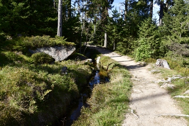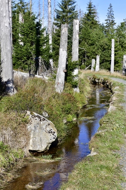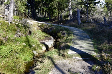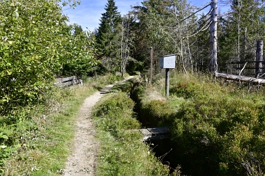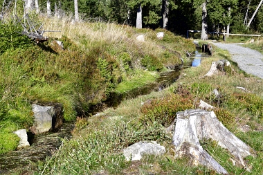 On y a extrait de la tourbe de 1713 à 1786, ce qui a donné le nom à la localité Torfhaus (maison de tourbe) 1713 bis 1786 wurde das Moor zur Torfgewinnung genutzt, woraufhin der Ort Torfhaus zu seinem Namen kam From 1713 to 1736 the moor was used for peat extraction, which is how the name of Torfhaus got its name