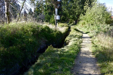 Ce chemin servait au controleur du fossé pour en vérifier son état Die Grabenbrust diente als Kontrollweg für den Grabenwärter The embankment was used by the ditch keeper as a control way