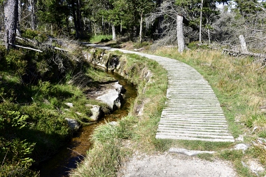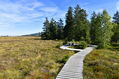 Chemin de planches pour les randonneurs dans la tourbière Bohlenweg für die Wanderer durch das Torfhausmoor Boardwalk for the hikers through the Torfhaus Moor