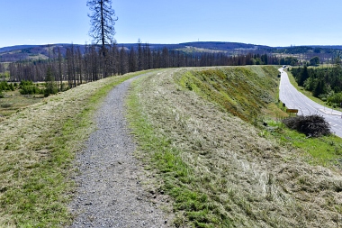 La digue traverse la ligne de partage des eaux entre le nord (Oker) et le sud Harz Hier wurde die Wasserscheide zwischen Nordharz (Oker) und Südharz (Söse) überbrückt The watershed between North and South Harz (Oker and Söse Rivers) was bridged here
