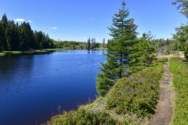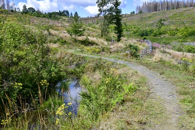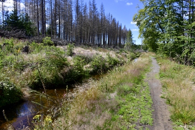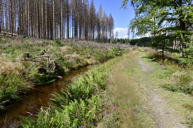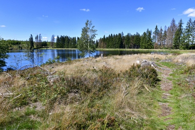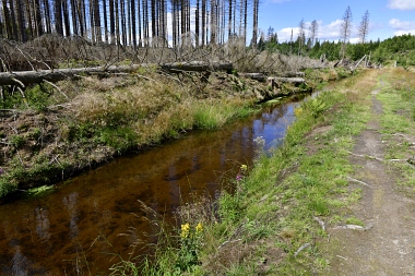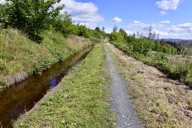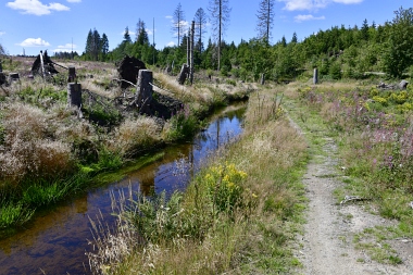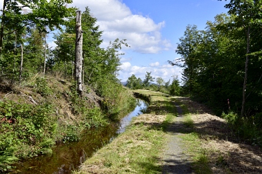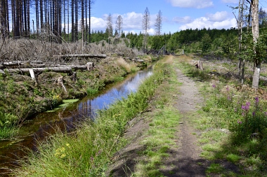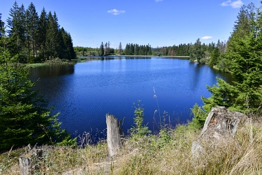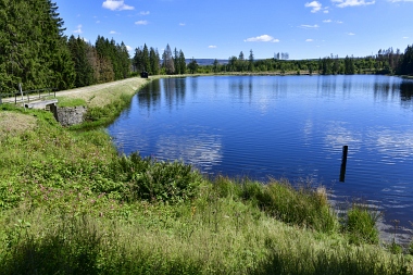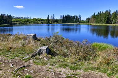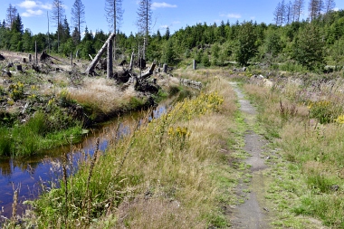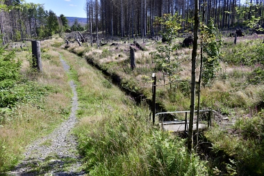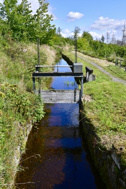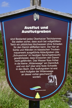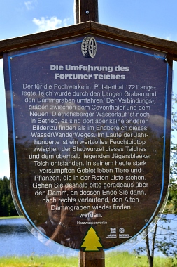 Cet étang servait à l'alimentation en eau des bocards du Polstertal et aussi à celle des riches mines Dorothée et Caroline de Clausthal Dieser Teich diente der Wasserversorgung der Pochwerke im Polstertal und der reichen Gruben Carolina und Dorothea des Burgstätter Zuges This pond served for the water supply of the stamp mills in the Polstertal and for the supply of the rich Dorothy and Caroline Mines of Clausthal