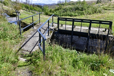 L'eau était amenée 18 m plus haut à l'aide de l'énergie électrique et pouvait couler dans les vieux fossés pour se jeter dans les étangs des Paons. Cette eau allait ensuite dans le puits Kaiser-Wilhelm où elle produisait du courant électrique Durch elektrische Energie wurde das Wasser um 18 m gehoben und konnte unter Ausnutzung der alten Gräben in die Pfauenteiche fließen. Von dort wurde es zum Kaiser-Wilhelm-Schacht in Clausthal geführt wo es in einem Kraftwerk in 365 m Tiefe elektrischen Strom erzeugte. At the former pumping plant