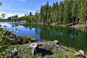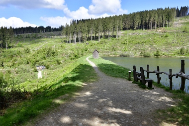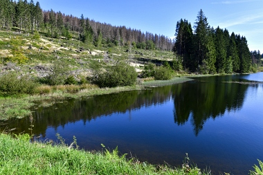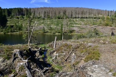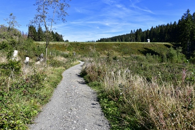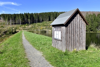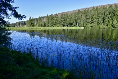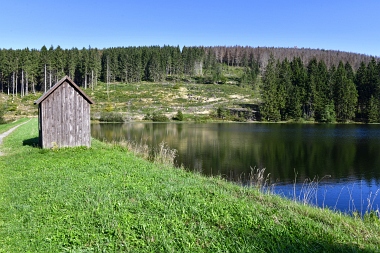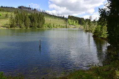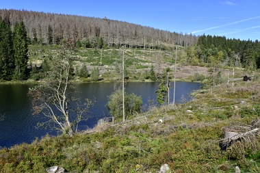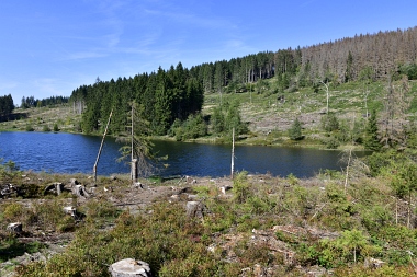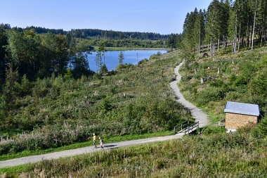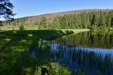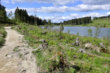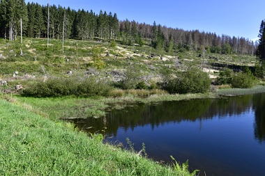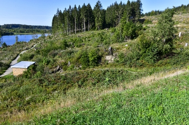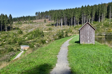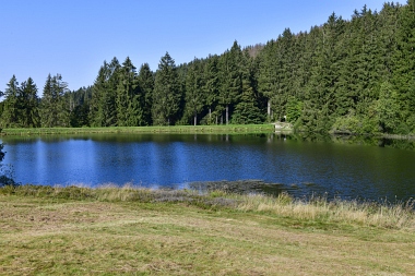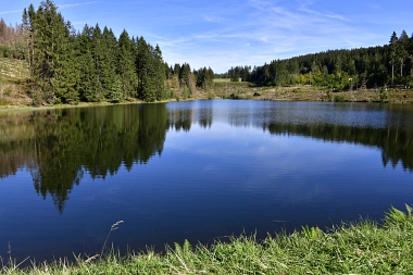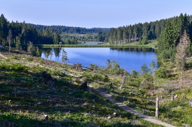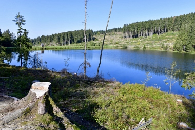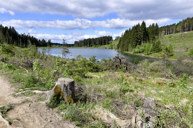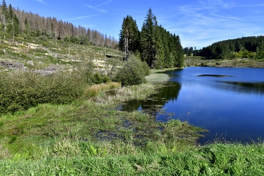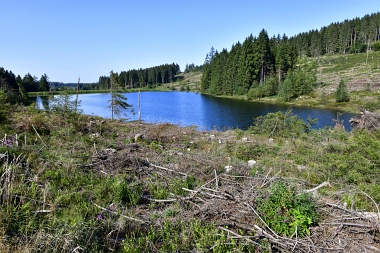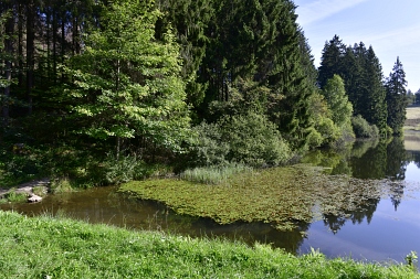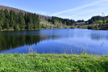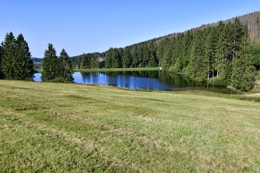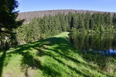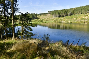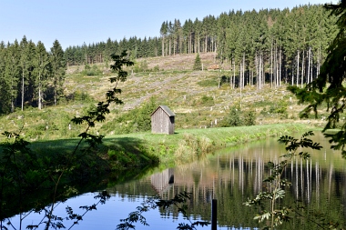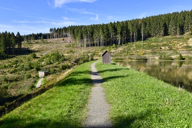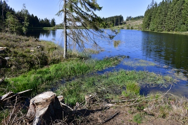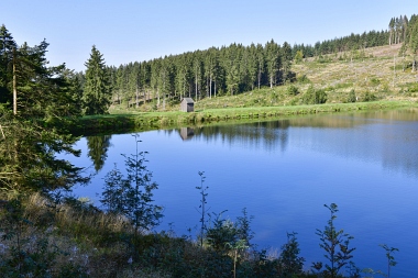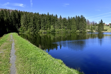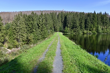 Vue sur la digue du nouvel étang Grumbach Blick zum Damm des Neuen Grumbacher Teiches View to the dam of the New Grumbach Pond