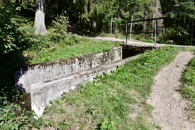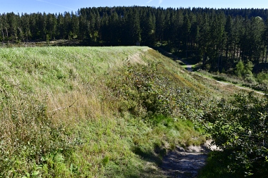 La digue de l'étang fut plus tard surélevée Der Teichdamm wurde später mindestens einmal erhöht Later on, the dam was raised at least once