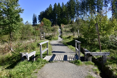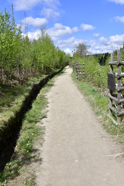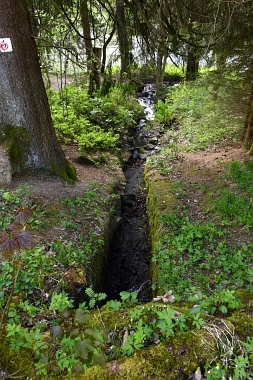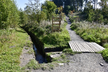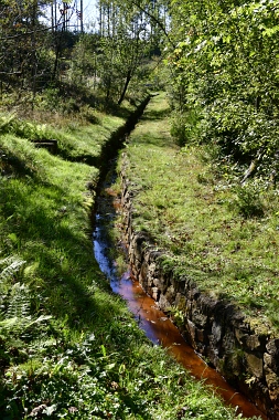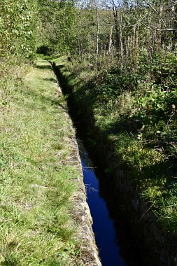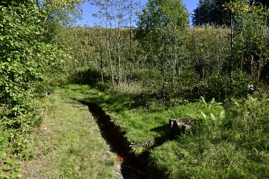 Le fossé amenait l'eau de l'étang Than ainsi que le surplus d'eau de l'étang des Grues Der Graben bringt Wasser aus dem Than Teich heran. Hier konnte auch Überschusswasser aus dem Versorgungsgebiet des Hahnenkleer Bergbaues eingespeist werden Herrenwieser Graben The ditch conducted the water from the Than Pond and the water from the Crane Pond