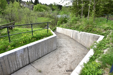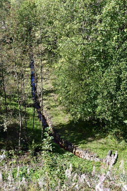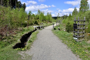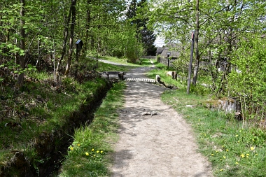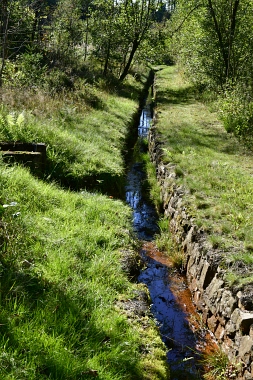 Ce fossé amenait l'eau aux bocards et aux fonderies de Bockswiese Der Wäsche Graben führte das Wasser zu den Bockswieser Poch- und Hüttenwerken This water ditch carried the water to the stamp mills and the smelting plants in Bockswiese