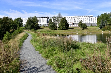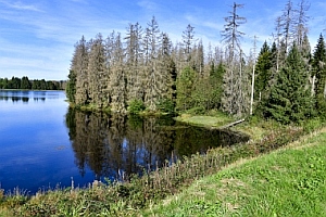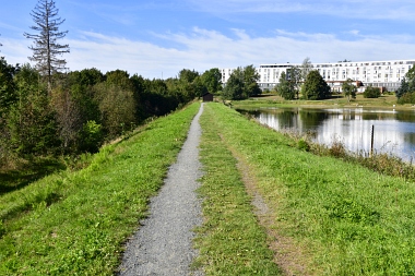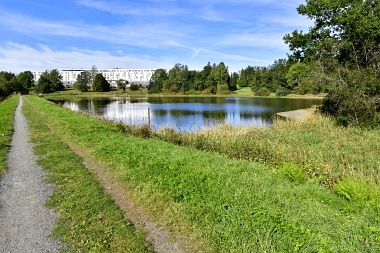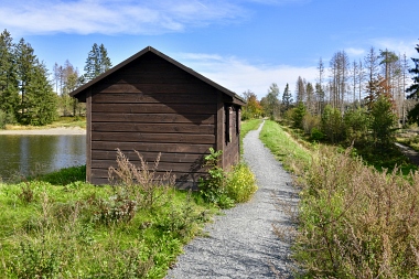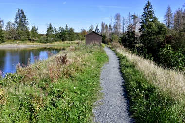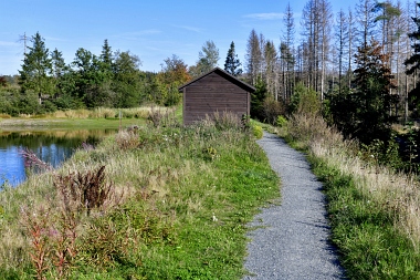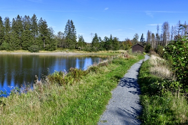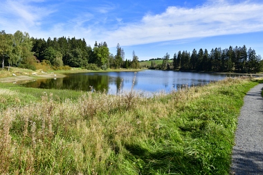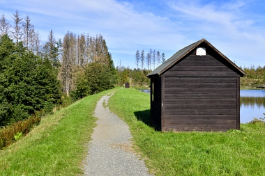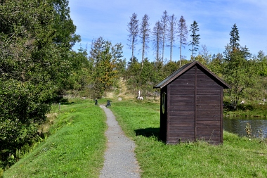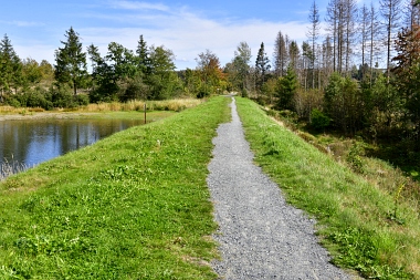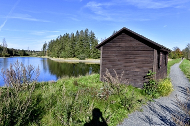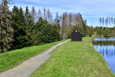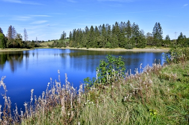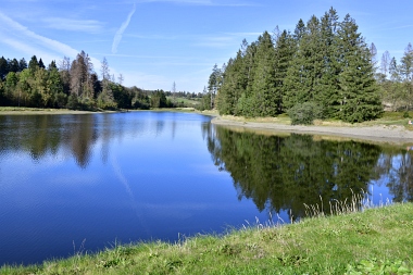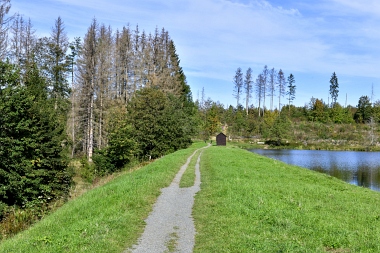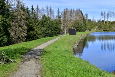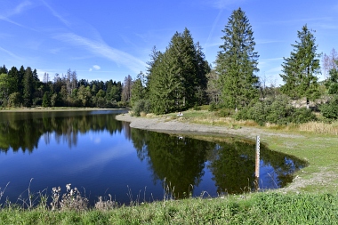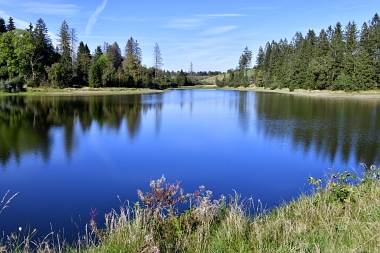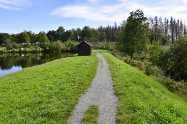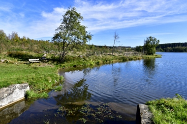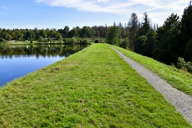 Sur la digue de l'étang Schwarzenbach Auf dem Damm des Schwarzenbacher Teiches On the dam of the Schwarzenbach Pond