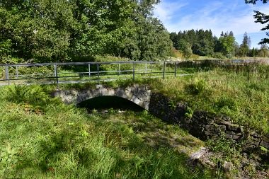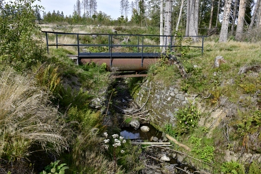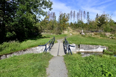 Un pont de canalisation fait passer l'eau du canal Rosenhof par dessus le fossé de trop-plein de l'étang Pixhai Eine Rohrbrücke führt den Oberen Rosenhöfer Kunstgraben über den Ausflutgraben des Pixhaier Teiches A pipe bridge carries the Upper Rosenhof Ditch over the overflow ditch of the Pixhai Pond