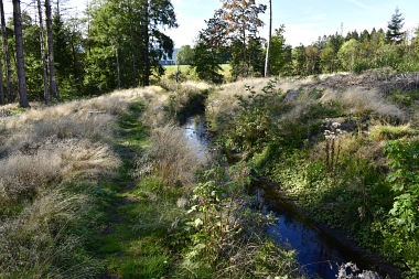 Le fossé amenait l'eau provenant de l'étang Ziegenberg en contournant l'étang du Grand Marais au moulin Flambach Der Wassergraben führte das Wasser vom Auslauf des Ziegenberger Teiches um den Sumpfteich bis zur Flambacher Mühle am Fuß des Unteren Flambacher Teiches The water ditch carried the water from the Ziegenberg Pond around the Marsh Pond to the Flambach Mill