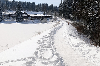 Sur la digue de l'étang en hiver Auf dem Teichdamm im Winter On the pond ditch in winter