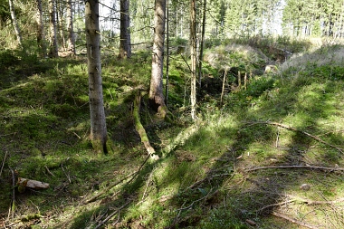 Le fossé Stadtweg conduisait l'eau aux mines et aux bocards de Bockswiese Der Stadtweger Graben (damals3,3 km lang) leitete das Wasser zu den Bockswieser Gruben und Pochwerken This ditch conducted the water to the Bockswiese mines and stamp mills